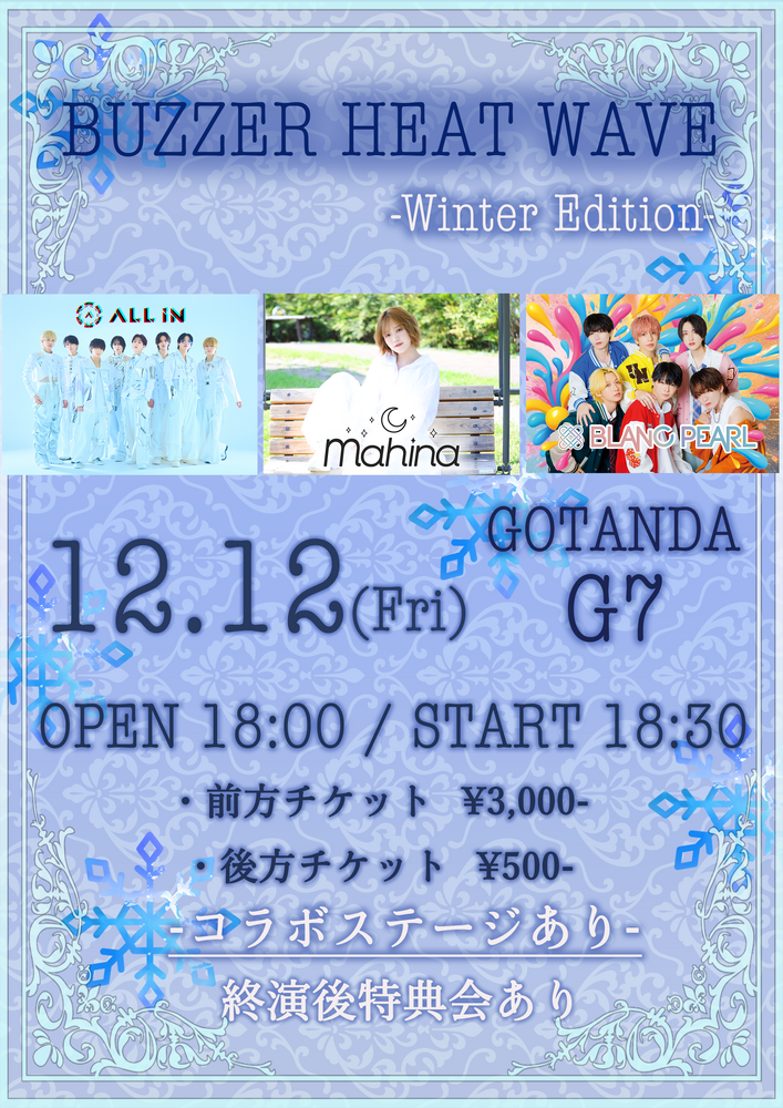 ・出演者キャンセルに伴う返金対応は致しかねますのであらかじめご了承ください。
