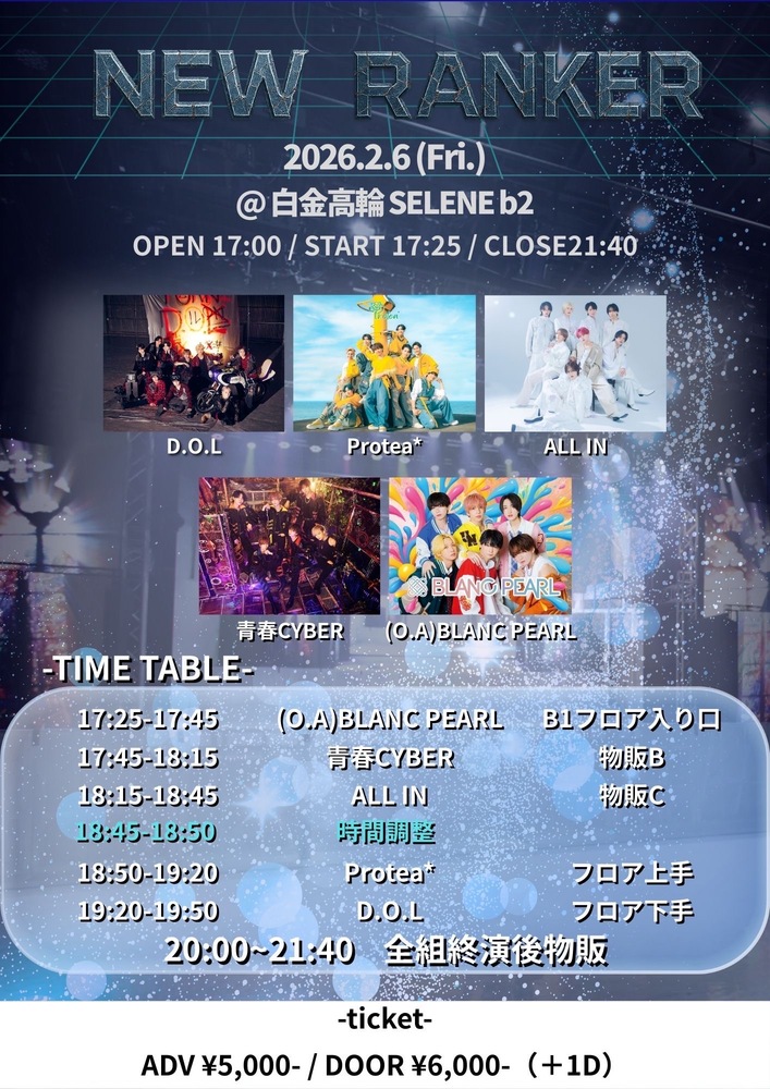 時間:OPEN 17:00 / START 17:25 / CLOSE 21:40