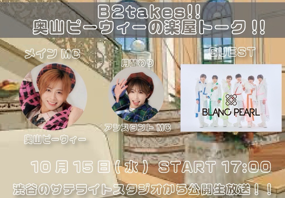 【第6回目放送】『B2takes!!奥山ピーウィーの楽屋トーク』にBLANC PEARLの出演が決定!
